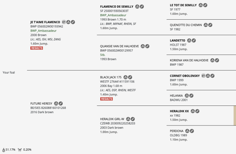Je t’Aime Flamenco (Flamenco de Semilly x Landetto (Landgraf)) x Future Heresy (Black Jack (Cornet Obolensky) x Heraldik xx)