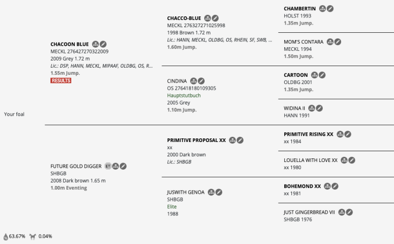 SIRE – Chacoon Blue – Described by Paul Schockemohle as “the best son of Chacco-Blue”.